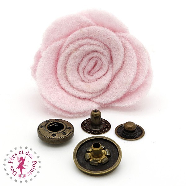 Bouton pression métallique en forme de bouton de rose pour fermer un sac ou une pochette, customiser un vêtement... selon votre créativité et envie du moment.
