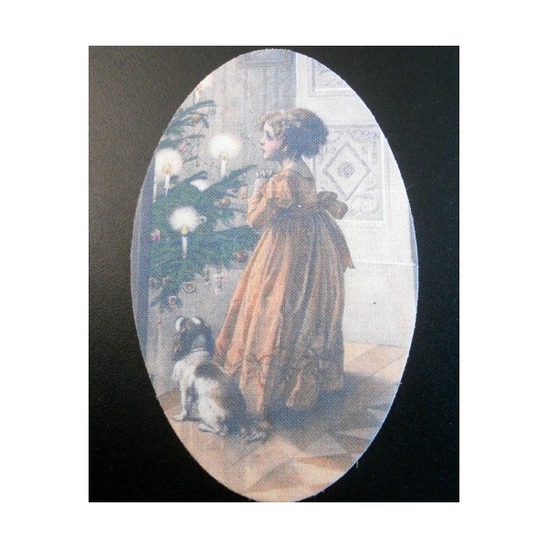 Etiquette artisanale "Lumières de Noël", imprimée sur du drap ancien, à coller au fer à repasser.