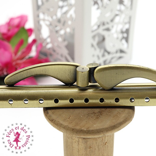 Fermoir métallique gravé avec jambes "grande ouverture" avec une fermeture en forme de boules pour réaliser un portemonnaie, un sac ou une pochette.