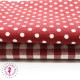 Coupons en mélange coton/lin dans les tons rouge foncé et blanc avec des pois et des carreaux vichy pour réaliser de jolies petites confections, des sacs et des pochettes.