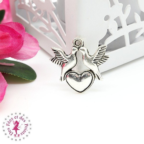 Charm / Pendentif en forme de deux colombes sur un coeur pour orner vos ouvrages fait main et leur apporter une touche unique !