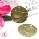 Charm / Pendentif de forme ronde avec un hibou sur une face et un blazon sur l'autre pour orner vos ouvrages et leur apporter une touche unique !