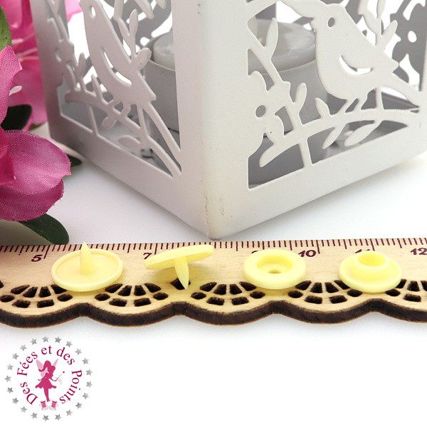 Chaque pression est formée de 4 parties d'une même couleur : 2 chapeaux avec pique, 1 dessous femelle, 1 dessous mâle et se pose uniquement avec la pince KAM ou ZYT. Une explication pour le montage est disponible dans les tutos.