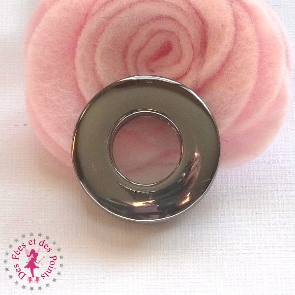 Oeillet de 27 mm de diamètre à visser pour fixer des anses de sac ou faire passer un cordon.