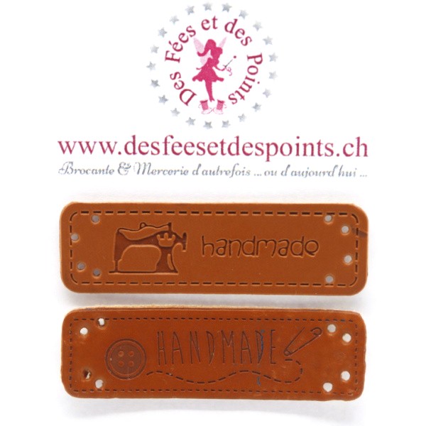 Assortiment de deux étiquettes en cuir synthétique "Handmade" à coudre pour agrémenter toutes vos créations.