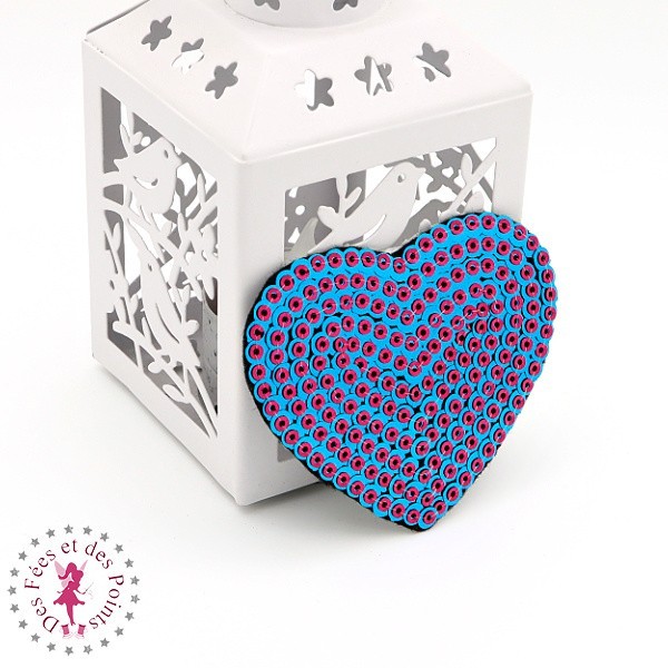 Appliqué thermocollant en forme de coeur brodée de sequins/paillettes bi-colores, pour décorer vos créations, personnaliser vos vêtements et accessoires.