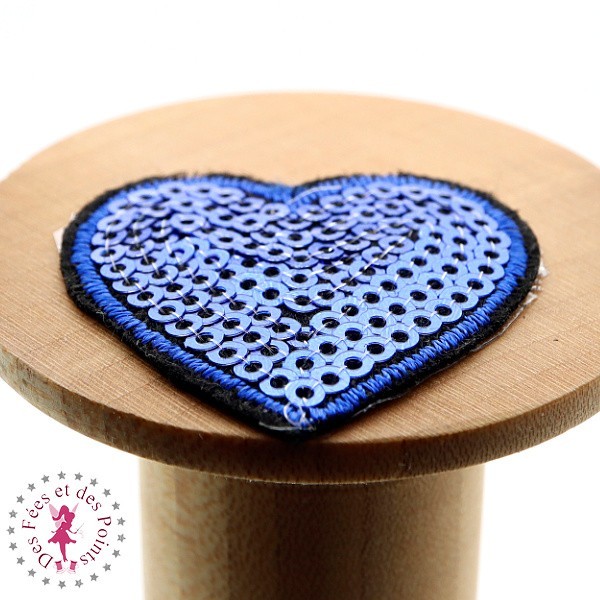 Appliqué thermocollant en forme de coeur brodée de sequins/paillettes bi-colores, pour décorer vos créations, personnaliser vos vêtements et accessoires.