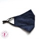 Masque composé de 3 couches en tissu avec un pince nez pour bien le caler sur le nez et des attaches pour les oreilles toutes douces, ajustables grâce à des pastilles de réglage en silicone.