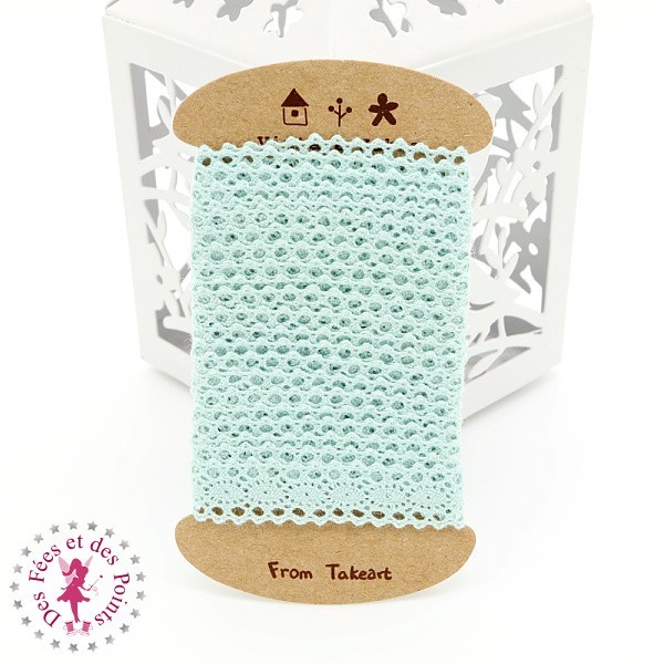 Ravissante dentelle en coton dans des couleurs tendres et romantiques, déjà enroulée sur une jolie cartonnette facile à ranger, idéale pour agrémenter vos créations.