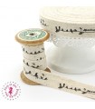 Ruban dans des couleurs naturelles avec une impression sur le thème du fait main pour faire des liens de fermeture de pochon, à coudre sur une pochette ou un sac, des porte-clés, des bracelets ...