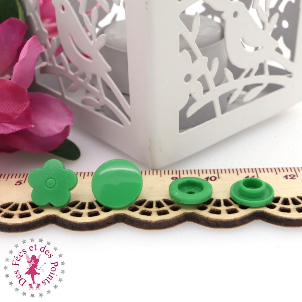 Pression KAM® en forme de fleur en sachet plastique refermable (super pratique !) de 10 pièces.