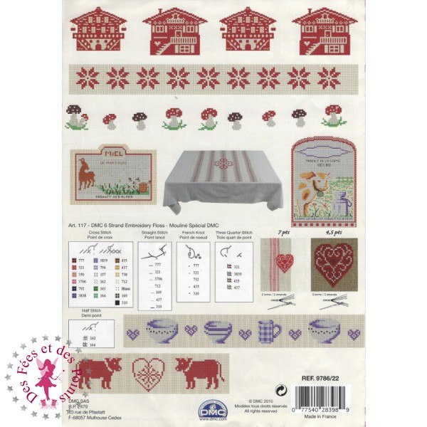 Fiche de broderie pour broder au point de croix et points traditionnels un petit tableau "Spanish Sampler.